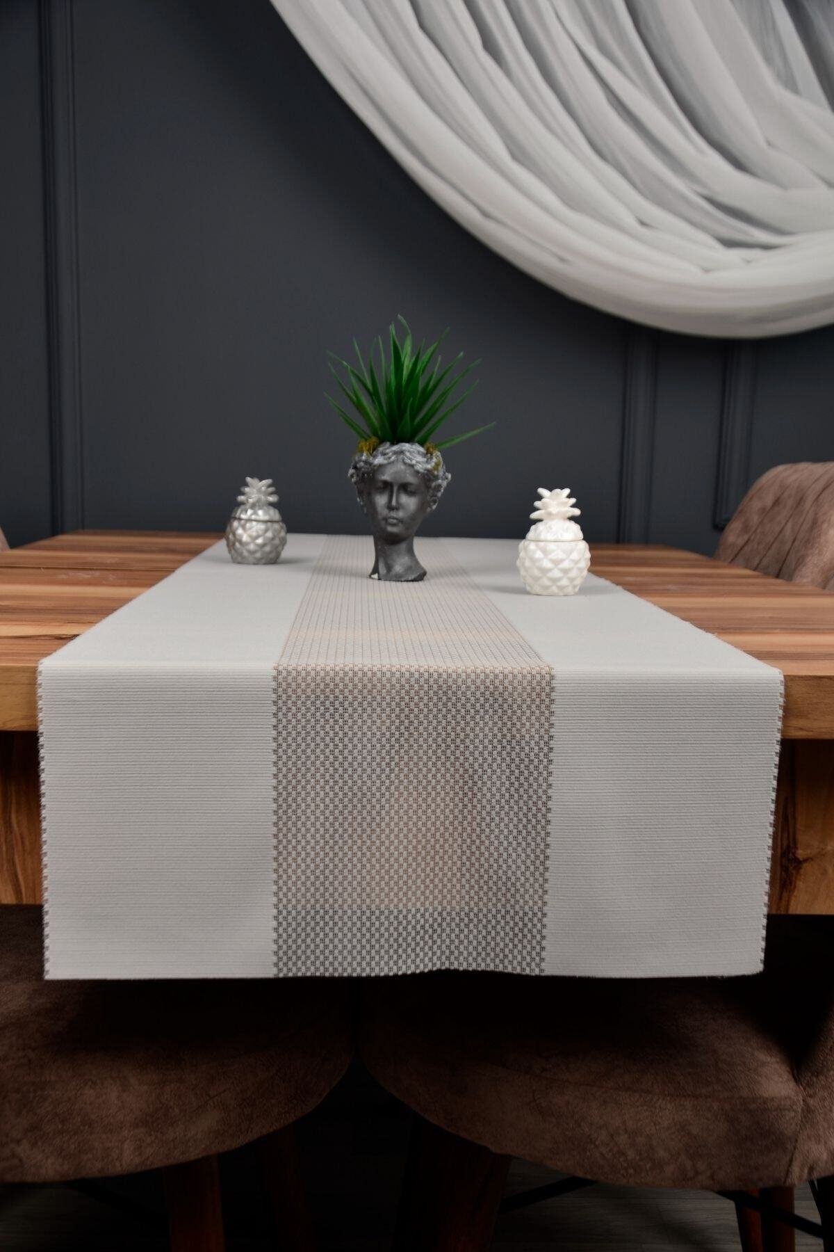 Sofralarınıza şıklık ve zarafet katacak runner masa örtüsü, modern tasarımı ve kullanışlı yapısıyla günlük kullanım ve özel davetler için idealdir.; Dayanıklı kumaşı sayesinde uzun ömürlü kullanım sunar, kolay temizlenebilir ve pratik bir şekilde kullanılabilir.; Ürün Özellikleri:• Ölçü: 40cm (en) x 140 cm (boy)• 30 derecede yıkanabilir.; • Ütülenebilir ve nemli bezle silinebilir.; • Leke çıkarıcı, yumuşatıcı ve çamaşır suyu kullanılmamalıdır.; Hem estetik görünümü hem de pratik temizleme imkânı ile sofralarınızı tamamlayan dekoratif bir parça olacaktır.