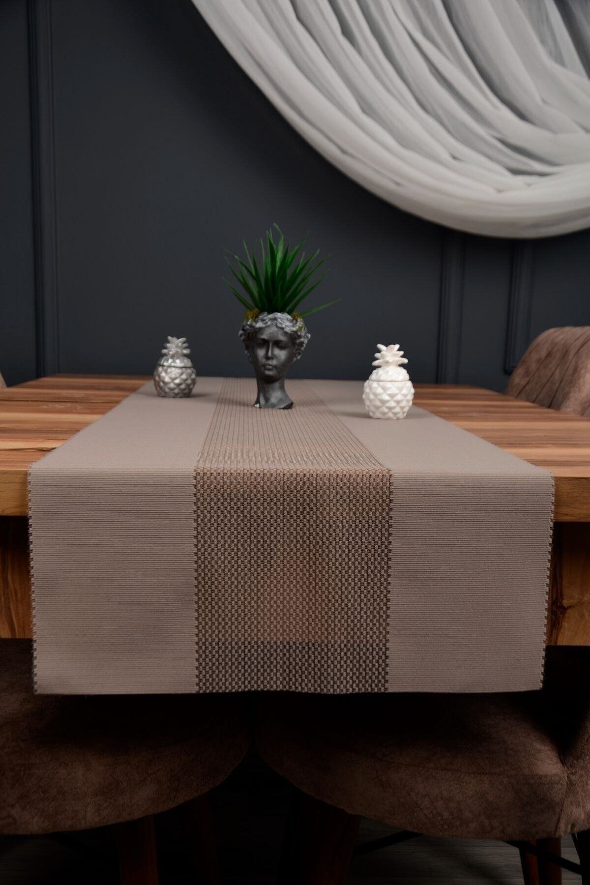 Sofralarınıza şıklık ve zarafet katacak runner masa örtüsü, modern tasarımı ve kullanışlı yapısıyla günlük kullanım ve özel davetler için idealdir.; Dayanıklı kumaşı sayesinde uzun ömürlü kullanım sunar, kolay temizlenebilir ve pratik bir şekilde kullanılabilir.; Ürün Özellikleri:• Ölçü: 40cm (en) x 140 cm (boy)• 30 derecede yıkanabilir.; • Ütülenebilir ve nemli bezle silinebilir.; • Leke çıkarıcı, yumuşatıcı ve çamaşır suyu kullanılmamalıdır.; Hem estetik görünümü hem de pratik temizleme imkânı ile sofralarınızı tamamlayan dekoratif bir parça olacaktır.
