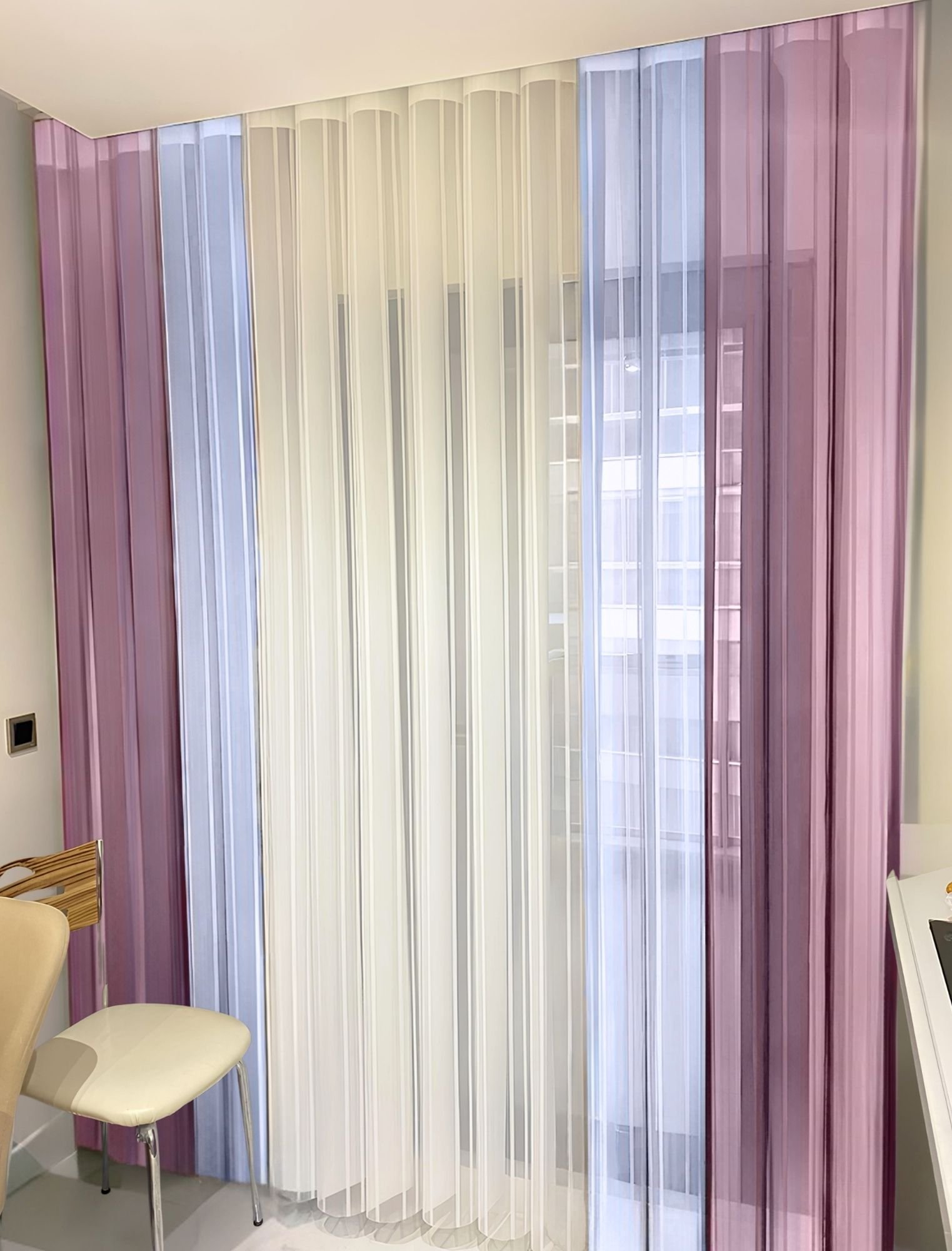 Mor – Beyaz – Lila Tül Dikey Perde