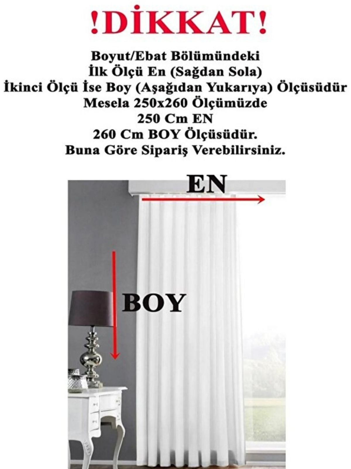 Boyut/Ebat bölümünde belirtilen ilk ölçü EN,