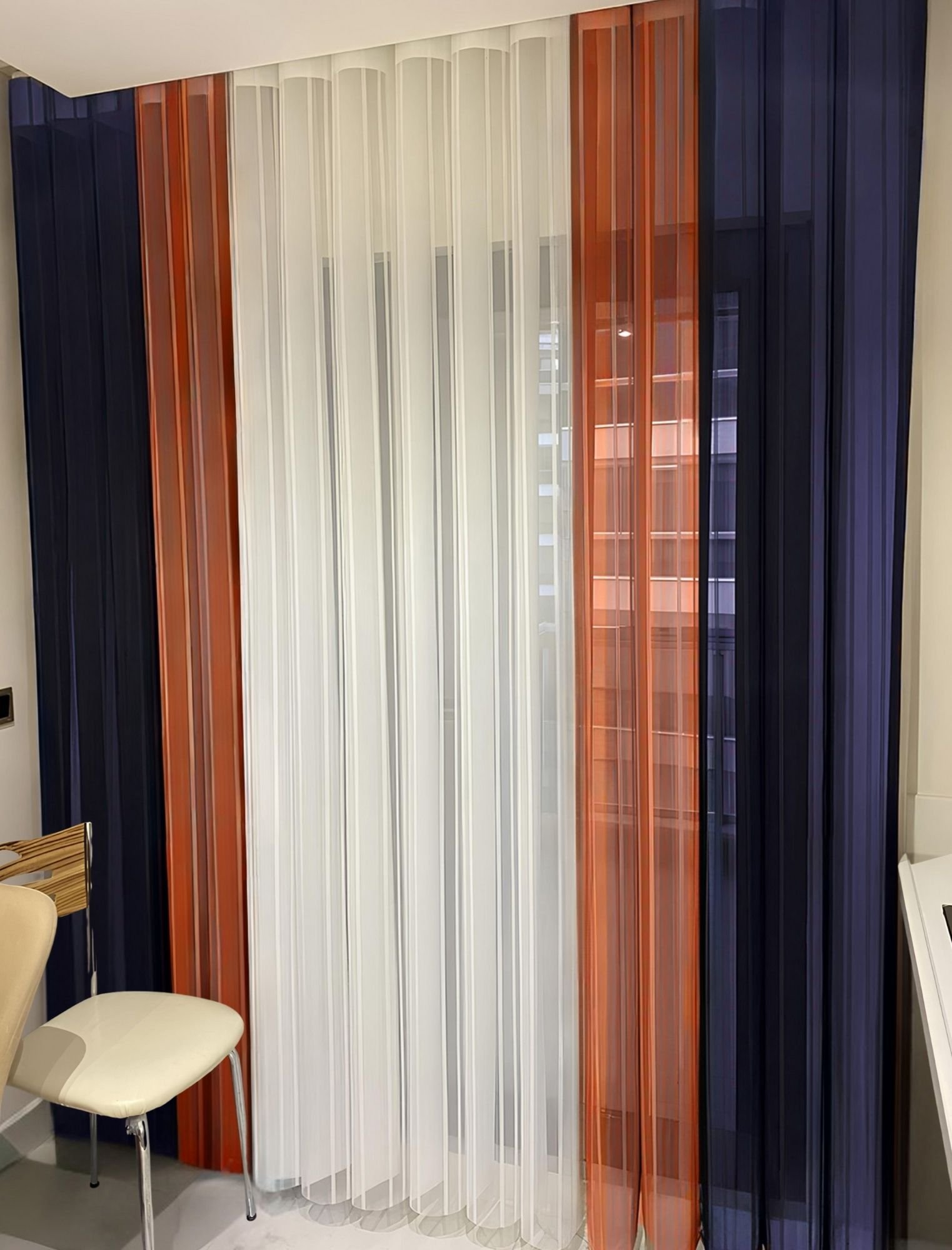 Turuncu – Beyaz – Lacivert Tül Dikey Perde
